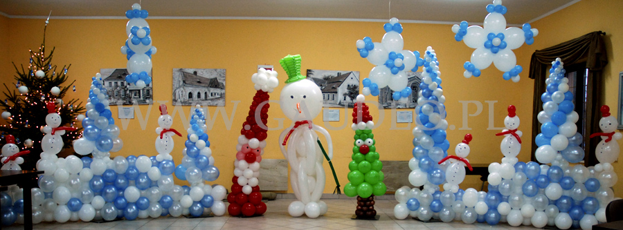 Niezwykle wdzięcznym odbiorcami dekoracji balonowych są dzieci. Kolorowe i błyszczące figury z balonów przyciągają je z magiczną siłą, wywołując na buziach szczerą radość. Czas świąt to dla nas wszystkich czas szczególny, wyjątkowy, tym bardziej dla dzieci to magiczny okres. Wspólnie możemy sprawić, aby imprezy Mikołajkowe i zabawy Gwiazdkowe dały im jeszcze więcej radości. Kolorowe dekoracje balonowe i bajkowe figury "wyrzeźbione" z balonów to jest to "coś", co wprowadzi na Waszych imprezach nastrój zabawy, beztroski i radości. Z balonów możemy stworzyć Mikołaja, postacie bałwanków, aniołków czy też choinki. Może potrzebujecie ścianę balonową z widoczkiem lub pingwinka i śnieżynkę – dla nas to cudowne wyzwanie. Wystrój może być bardziej świąteczny w kolorach czerwieni i zieleni z dodatkami złota, zimowy biało-błękitno-srebrny czy też typowo dziecięco-kolorowy. W każdym wariancie balony sprawdzą się wyśmienicie i na długo pozostanie w pamięci uczestników! :)
